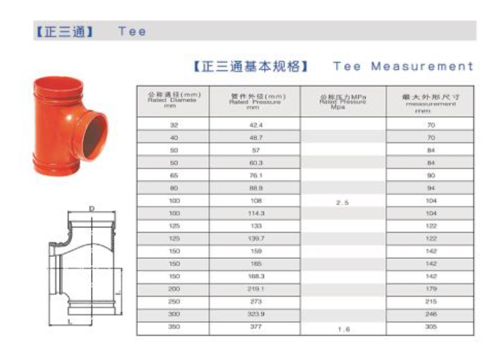 首页> 沟槽管件> 山东金盾>金盾 正三通