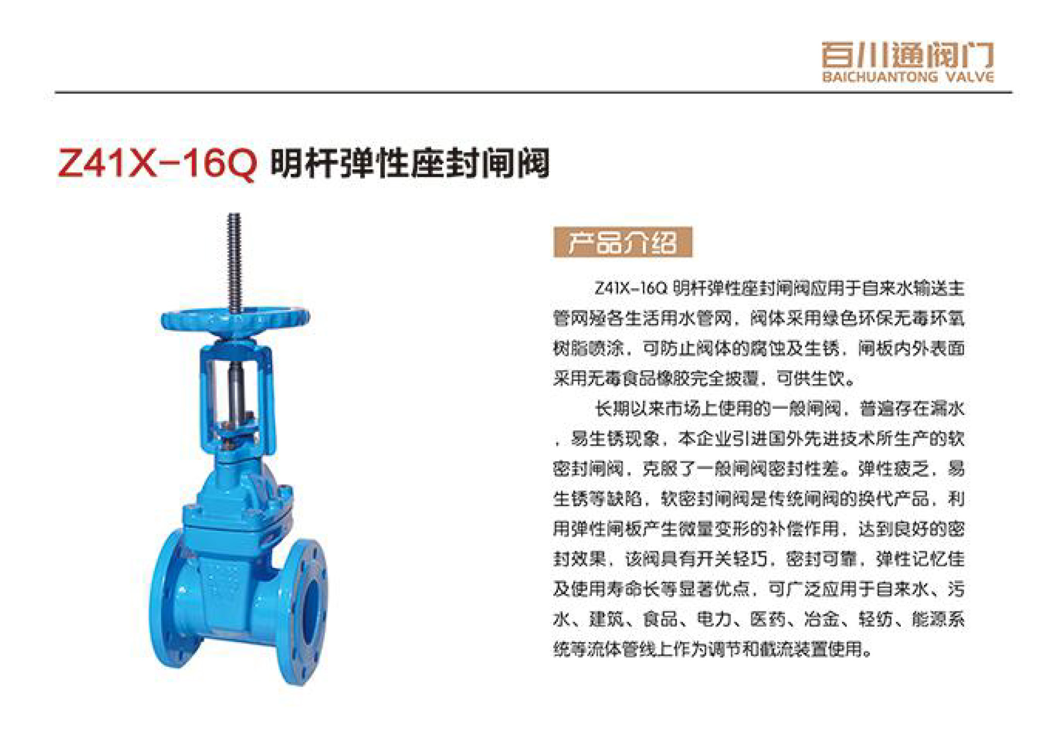 百川通 Z41X-16Q 明杆弹性座封闸阀